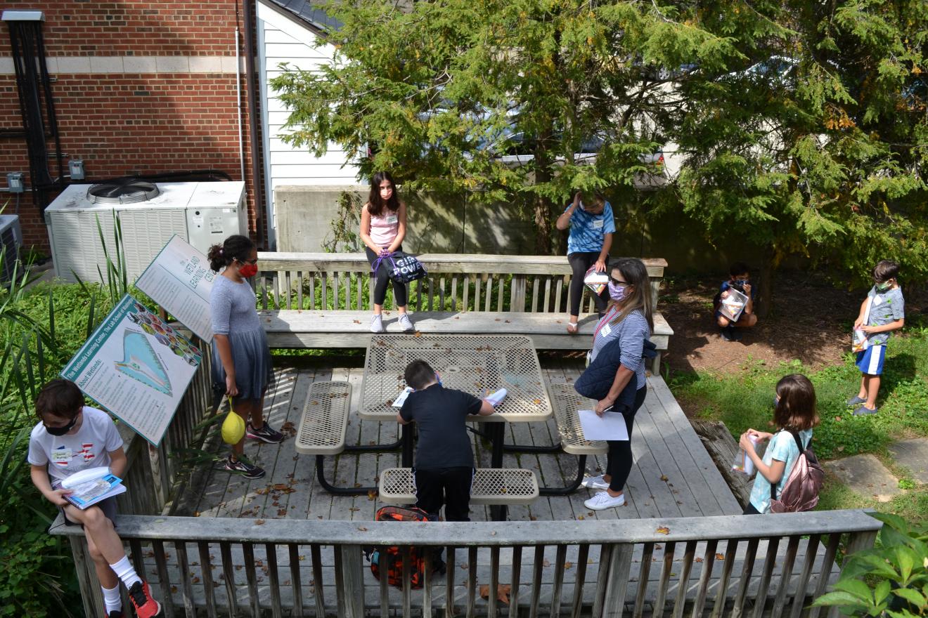 Then, with a checklist of items from nature like an acorn, moss, or “something that feels smooth,” they embarked on a scavenger hunt down in the wetlands and in the playground.